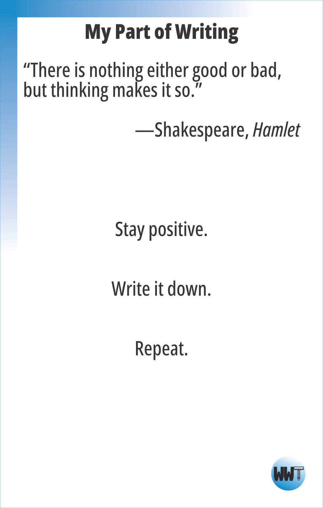 Meg: “There is nothing either good or bad, but thinking makes it so.” That’s Shakespeare.